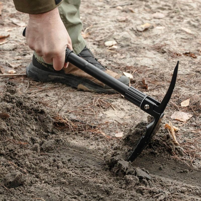 Set beinhaltet:Schaufel, Spitzhacke, Flaschenöffner, Säge