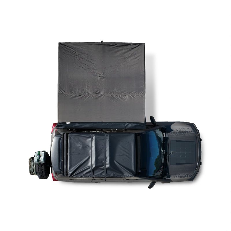 Die Montage ist einfach und intuitiv: Befestigen Sie die Markise einfach mit den mitgelieferten Halterungen am Geländer auf der Fahrerseite. Dank zweier Antriebe öffnet sich die Markise schnell und sicher, und das gesamte System lässt sich problemlos von einer Person aufbauen. Die perfekte Lösung für spontane Zwischenstopps – in wenigen Minuten ist alles startklar!