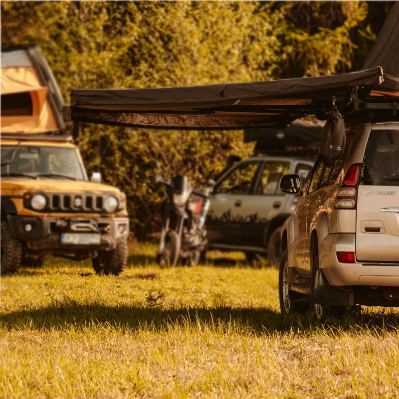 - Das Dach erstreckt sich um 180° um das Auto und schafft so einen großen, schattigen Raum, in dem Sie an heißen Tagen entspannen können.