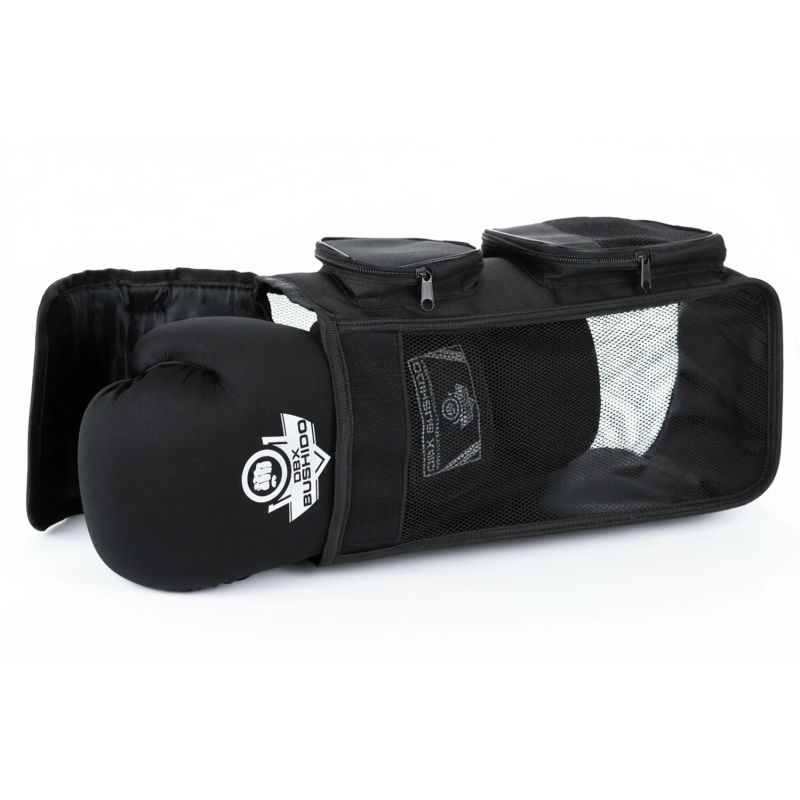Der DBX Bushido Organizer wurde für die bequeme Aufbewahrung und den Transport von Boxhandschuhen nach dem Training entwickelt. Das atmungsaktive Mesh-Gewebe sorgt für optimale Luftzirkulation, sodass die Handschuhe schneller trocknen und länger frisch bleiben.