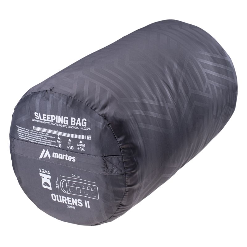 SCHLAFSACKGRÖSSE: 220 x 75 cm VERPACKT: 38 x 20 cm GEWICHT: 1,2 kg TEMPERATURBEREICH: KOMFORT: + 14°C GRENZE: + 10°C MINIMUM: 0°C MATERIALZUSAMMENSETZUNG: AUSSENMATERIAL: 100% POLYESTER FUTTER: 100% POLYESTER FÜLLUNG: 100% POLYESTER, 250 g/m2