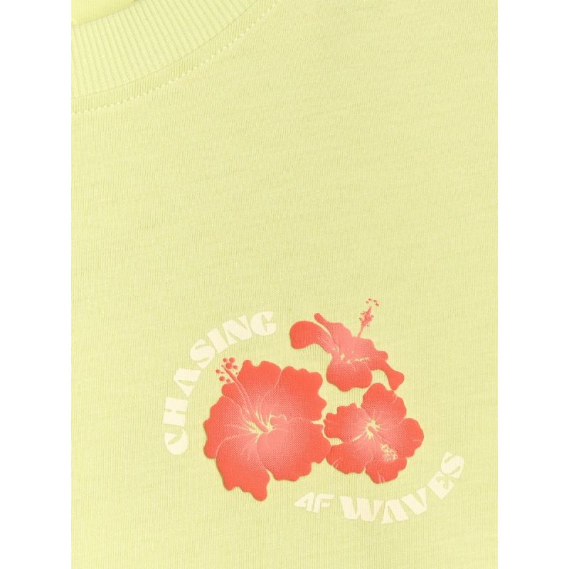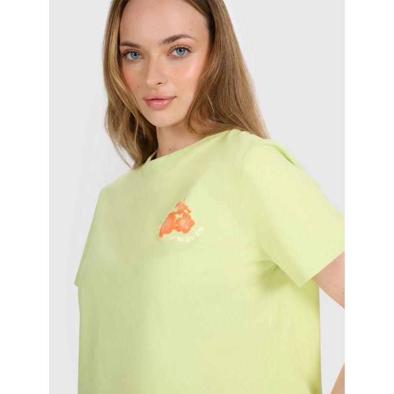 Dieses leichte Damen-T-Shirt mit kurzen Ärmeln ist die perfekte Wahl für wärmere Tage. Der lockere, Oversized-Schnitt sorgt für Komfort und Bequemlichkeit, während sich der weiche Baumwollstoff angenehm auf der Haut anfühlt. Die Unifarben in Kombination mit dem Hawaii-Print verleihen dem Shirt eine lebendige, sommerliche Note und vereinen Komfort und lässigen Stil.
