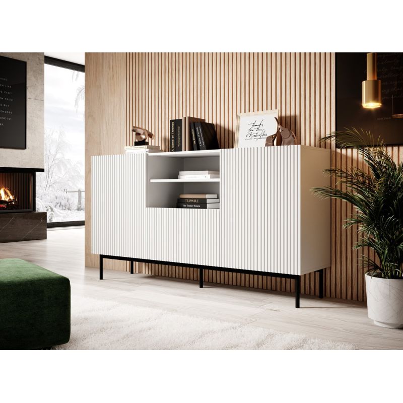 PAFOS Kommode auf schwarzem Stahlgestell, 150x40x90, weiß matt