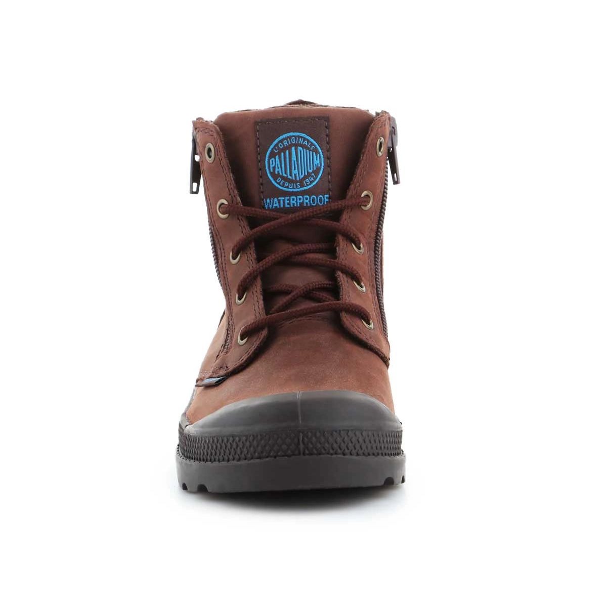 - Wasserdichte Palladium-Kinderschuhe mit hohem Schnürschaft aus Naturleder.