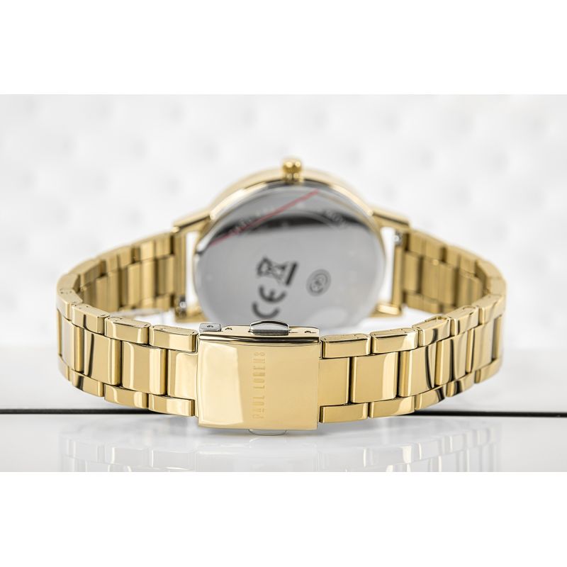 Das Armband dieser Uhr ist ein wahres Schmuckstück femininer Eleganz. Gefertigt aus hochwertigstem Edelstahl, garantiert es Langlebigkeit und ein zeitloses, elegantes Erscheinungsbild über Jahre hinweg. Seine glatte, dezent schimmernde Oberfläche schmiegt sich harmonisch ans Handgelenk und sorgt für ganztägigen Tragekomfort. Dank seiner präzisen Konturierung passt es sich perfekt der weiblichen Hand an, betont dezent die schlanke Form des Handgelenks und verleiht jedem Outfit einen Hauch von Eleganz. Edelstahl vereint Robustheit und Leichtigkeit und macht die Uhr so besonders angenehm zu tragen. Das Design des Armbands vereint Luxus und schlichte Eleganz und macht diese Uhr zum idealen Begleiter für Abendveranstaltungen und den Alltag. Das Paul Lorens Logo auf der Schließe rundet den Look perfekt ab.