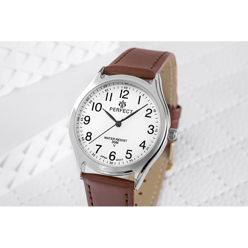 Das Lederarmband dieser Uhr vereint Klasse und Komfort. Gefertigt aus hochwertigstem Material, schmiegt es sich angenehm ans Handgelenk und besticht neben Langlebigkeit auch durch seine elegante Optik. Seine Weichheit garantiert hohen Tragekomfort im Alltag, während die makellose Verarbeitung den unverkennbaren Stil der Marke Perfect unterstreicht.