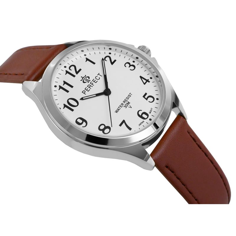 Das Lederarmband dieser Uhr vereint Klasse und Komfort. Gefertigt aus hochwertigstem Material, schmiegt es sich angenehm ans Handgelenk und besticht neben Langlebigkeit auch durch seine elegante Optik. Seine Weichheit garantiert hohen Tragekomfort im Alltag, während die makellose Verarbeitung den unverkennbaren Stil der Marke Perfect unterstreicht.