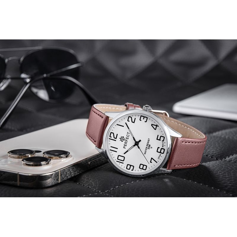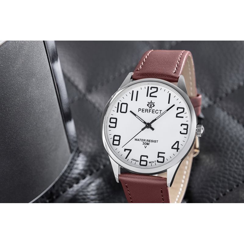 Das Lederarmband dieser Uhr vereint Klasse und Komfort. Gefertigt aus hochwertigstem Material, schmiegt es sich angenehm ans Handgelenk und besticht neben Langlebigkeit auch durch seine elegante Optik. Seine Weichheit garantiert hohen Tragekomfort im Alltag, während die makellose Verarbeitung den unverkennbaren Stil der Marke Perfect unterstreicht.