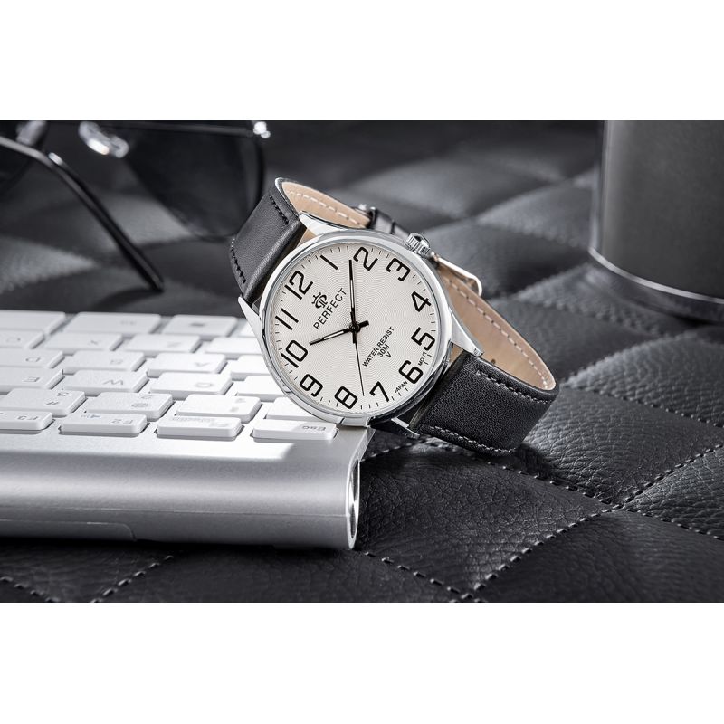 Die Herrenuhr „Perfect“ besticht durch ihr minimalistisches Design mit klassischer Stunden-, Minuten- und Sekundenanzeige. Dieses schlichte und zugleich elegante Design verleiht dem Handgelenk eine stilvolle Note und unterstreicht Charakter und Klasse.