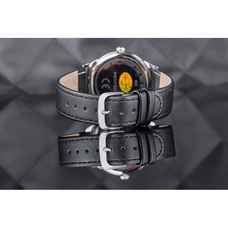 Das Lederarmband dieser Uhr vereint Klasse und Komfort. Gefertigt aus hochwertigstem Material, schmiegt es sich angenehm ans Handgelenk und besticht neben Langlebigkeit auch durch seine elegante Optik. Seine Weichheit garantiert hohen Tragekomfort im Alltag, während die makellose Verarbeitung den unverkennbaren Stil der Marke Perfect unterstreicht.
