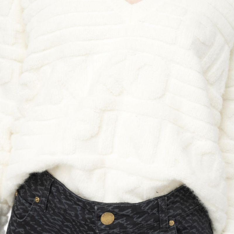 - ein weich geschnittener Pullover aus dreidimensionalem Frottee, personalisiert mit einem Logo-Motiv