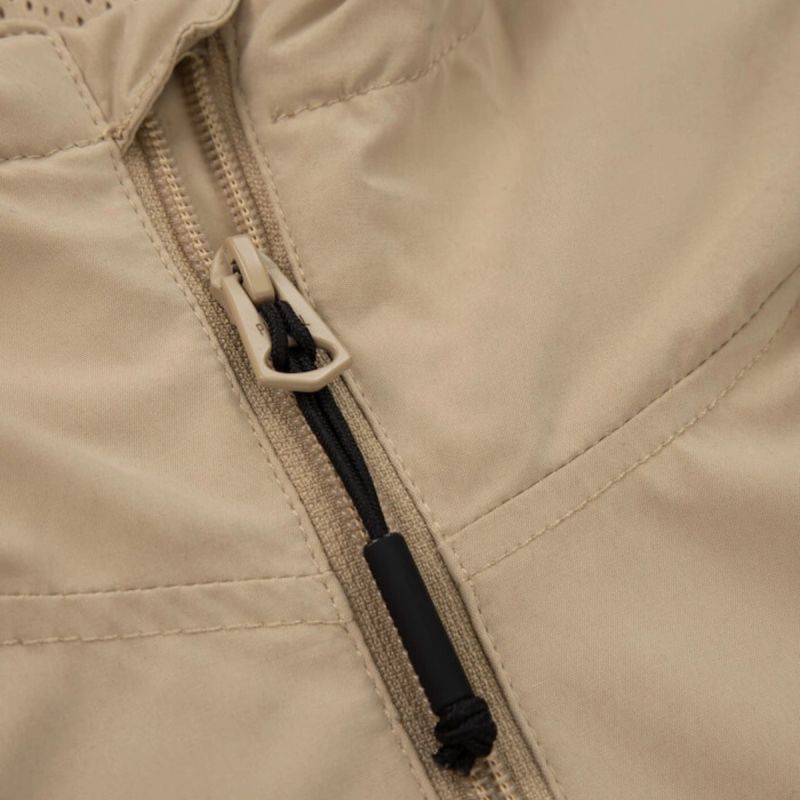 Belüftungslöcher unter den Armen fördern die Luftzirkulation, während elastische Bündchen an den Ärmeln und am unteren Ende der Jacke den Tragekomfort und die Wärmeisolation erhöhen.