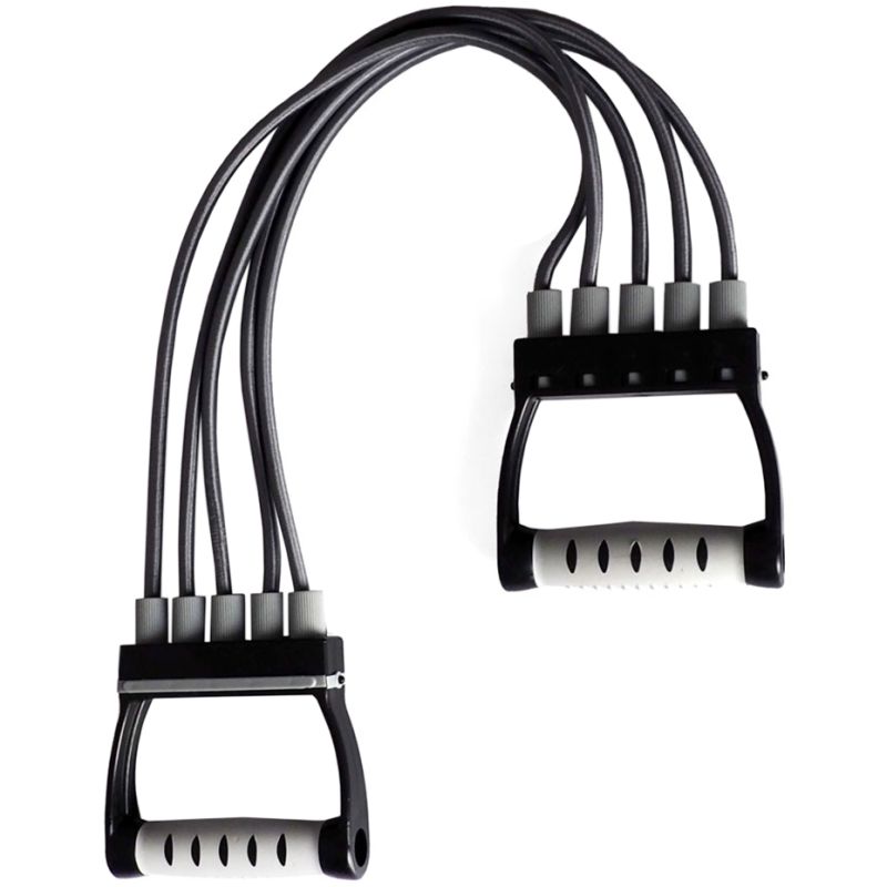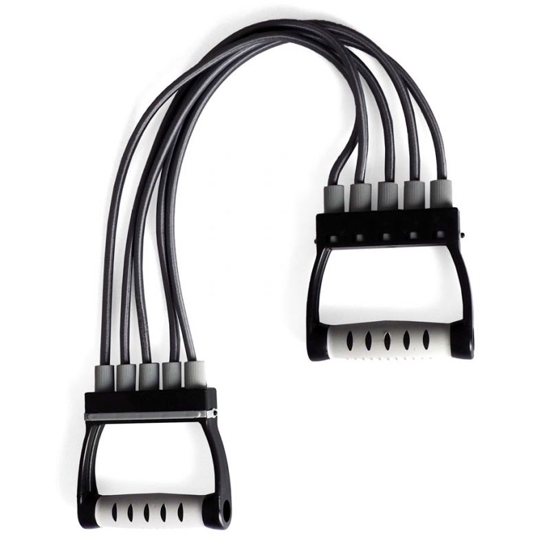 - Ein Expander, der aus fünf abnehmbaren Bändern besteht, die eine Widerstandseinstellung ermöglichen.