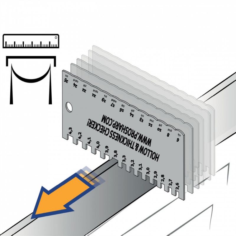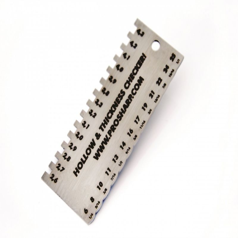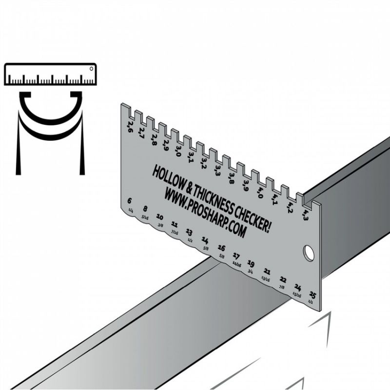 Prosharp-Messgerät für Klingendicke und -tiefe. Ein Muss für alle Schärfmaschinen. Misst Klingendicke und -tiefe in mm und Zoll.