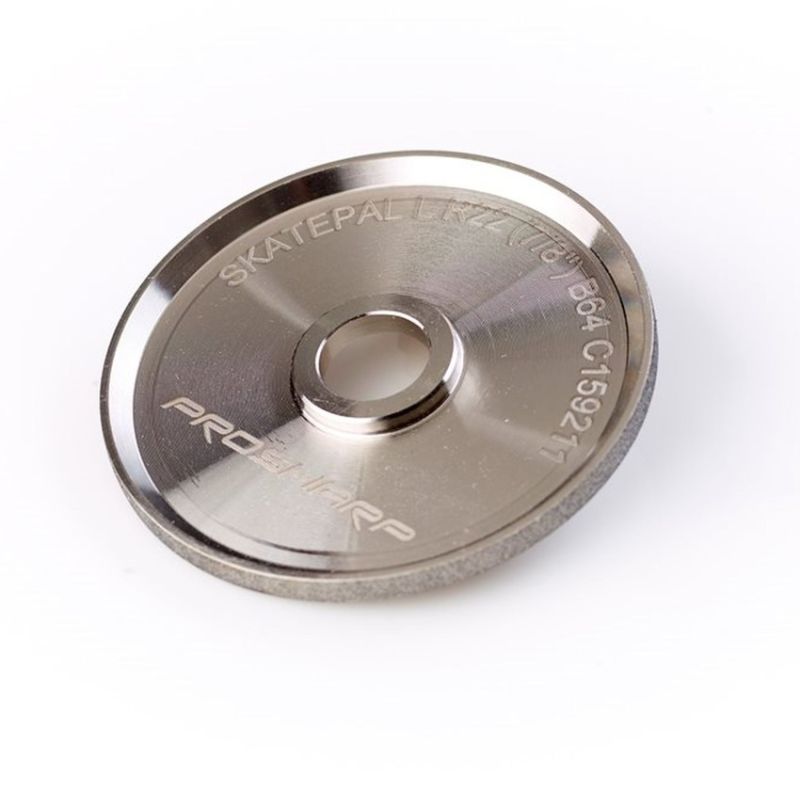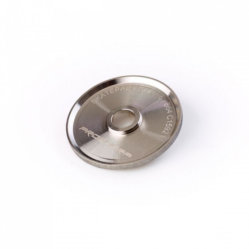 Prosharp 100-mm-Schleifscheibe. Diese Scheibe ist perfekt für die SkatePal®-Maschine. Eine feine, diamantbeschichtete Scheibe für den SkatePal®, die scharfe und langlebige Ergebnisse liefert. Ideal für Teams oder Geschäfte, die hochwertiges Schleifen anbieten möchten. 100-mm-Schleifscheiben eignen sich am besten für Hockeyschlittschuhe, und Kinderschlittschuhe sind ideal für den Verleih (wir empfehlen 60 mm für Torwart-, Eiskunstlauf- und Bandy-Schlittschuhe). Größen: XS R13 (1/2") B64 25003 S R16 (5/8") B64 25004 M R19 (3/4") B64 25005