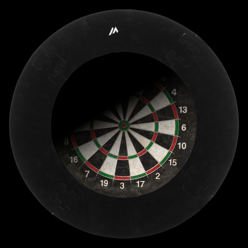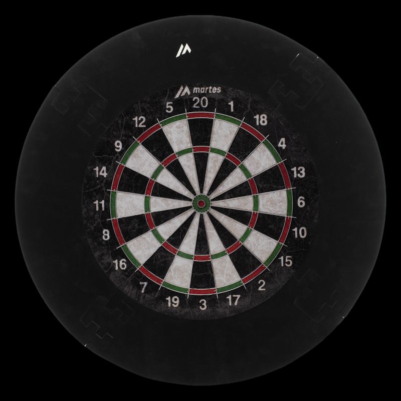 FALTBARER DARTBOARD-SCHUTZ DURCHMESSER: 45 cm DICKE: 2,7 cm GEWICHT: 400 g MATERIALZUSAMMENSETZUNG: EVA-SCHAUM SPEZIFIKATIONEN: - FLOCKBESCHICHTETE OBERFLÄCHE