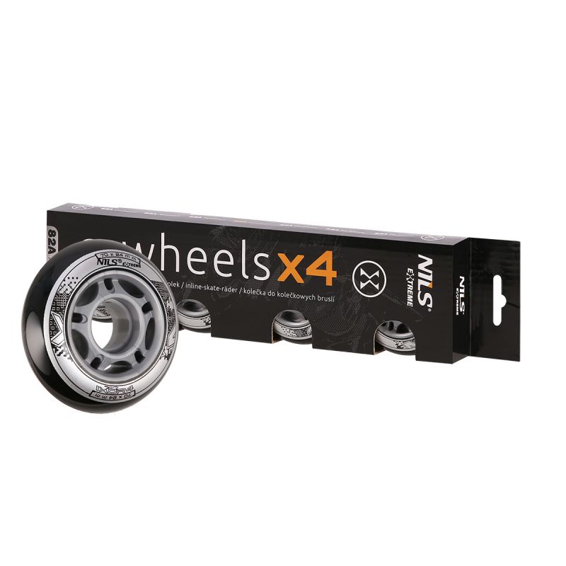 Die PU BLACK NILS EXTREME-Räder bestehen aus Polyurethan. Die wichtigsten Radparameter sind Härte und Durchmesser. Die Härte der Räder bestimmt sowohl den Fahrkomfort als auch die Haftung. PU-82A-Räder bieten eine gute Stoßdämpfung und eine hervorragende Anpassung an jede Oberfläche. Der Raddurchmesser beeinflusst direkt die Fahrgeschwindigkeit. Räder mit größerem Durchmesser ermöglichen höhere Geschwindigkeiten, garantieren aber nicht so viel Manövrierfähigkeit wie Räder mit kleinerem Durchmesser.