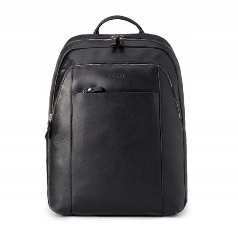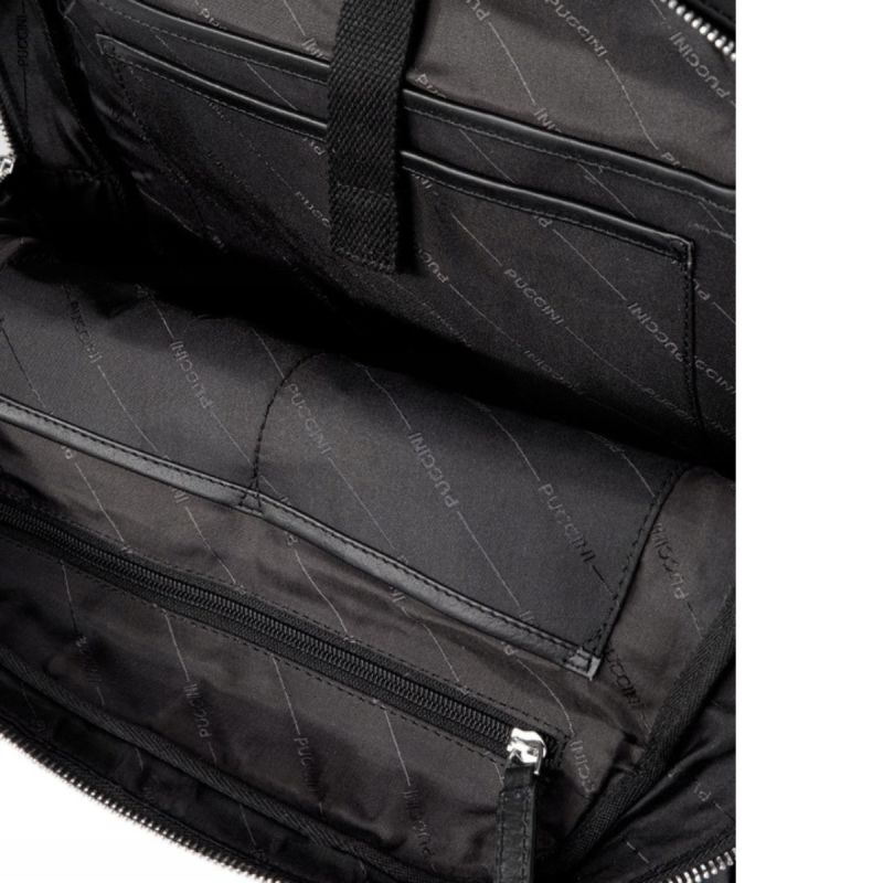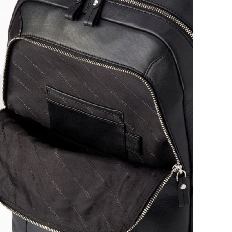 Puccini Royal Collection 15L Schwarzer Arbeitsrucksack aus echtem Leder