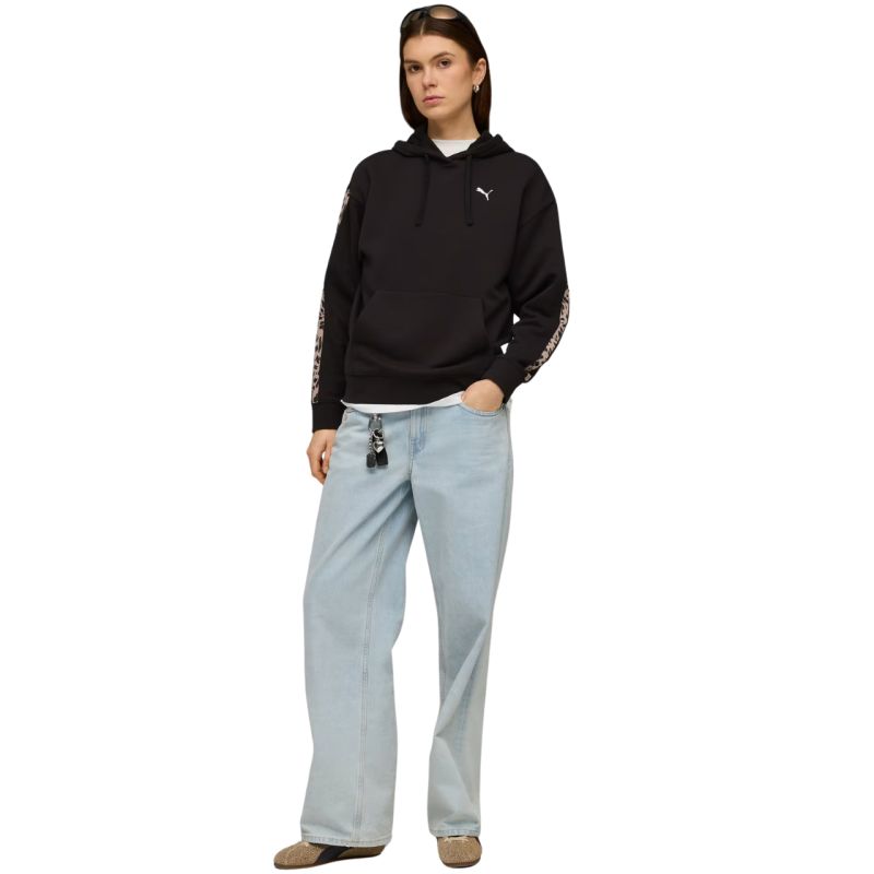 Puma ESS Graphic Animal Comfort Hoodie Damen Schwarz 691822 01 Dieser Puma Damen-Hoodie ist perfekt für jeden Tag. Kleines Logo auf der Vorderseite. Lockere Passform. Gerippte Bündchen und Saum. Vordertasche. Verstellbare Kapuze. Streifen im Animal-Print. Spezifikationen: Hauptmaterial: 68 % Baumwolle, 32 % Polyester; Rippstrick: 97 % Baumwolle, 3 % Elastan; Kapuzenfutter: 100 % Baumwolle