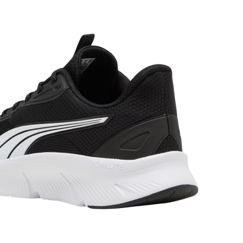 Puma Flex Focus Lite Modern Herrenschuhe Schwarz 310093 01. Diese Puma Herrenschuhe sind ideal zum Laufen. Sie verfügen über ein strapazierfähiges Obermaterial aus Textil- und Synthetikfasern. Die klassische Schnürung sorgt für einen festen Sitz und bietet optimale Stabilität und Unterstützung beim Laufen. Das Textilfutter bietet dank der PumaLite Foam-Technologie Dämpfung und Elastizität. Die Gummiaußensohle garantiert guten Grip. Das RunGuide-System unterstützt die korrekte Ausrichtung und Zentrierung des Fußes bei jedem Schritt. Durch die Verwendung umweltfreundlicher Materialien trägt der FlexFocus Lite Modern zu einer nachhaltigen Entwicklung bei. Technische Daten: Schnürschuh. Das Textilobermaterial besteht zu mindestens 20 % aus recycelten Materialien. PUMALite – ein ultraleichter Schaumstoff aus mindestens 10 % recyceltem EVA. Zonen-Gummiaußensohle.