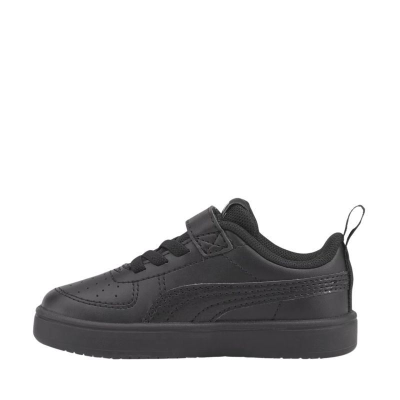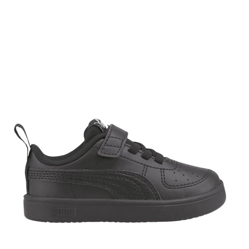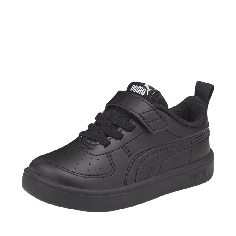 Puma Rickie AC+ Inf Kinderschuhe Schwarz 384314 02. Diese Puma Kinderschuhe sind perfekt für den Alltag. Sie bestehen aus Kunstleder, haben Perforationen im Vorderfußbereich, ein weiches Textilfutter und eine Schaumstoff-Innensohle. Elastische Riemen im Schnürsenkelstil, ein zusätzlicher Klettverschluss und eine Gummisohle runden das Design ab.