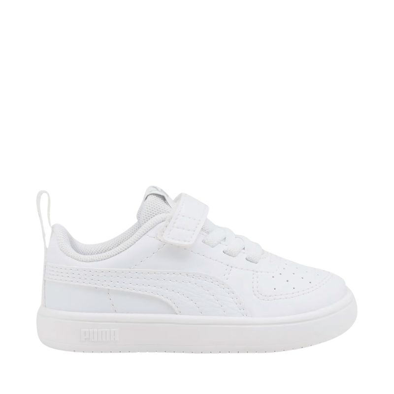 Puma Rickie AC+ Inf Kinderschuhe Weiß 384314 01 Diese Puma Kinderschuhe sind perfekt für den Alltag. Sie bestehen aus Kunstleder, haben Perforationen im Vorderfußbereich, ein weiches Textilfutter und eine Schaumstoff-Innensohle. Elastische Riemen im Schnürsenkelstil, ein zusätzlicher Klettverschluss und eine Gummisohle runden das Design ab.