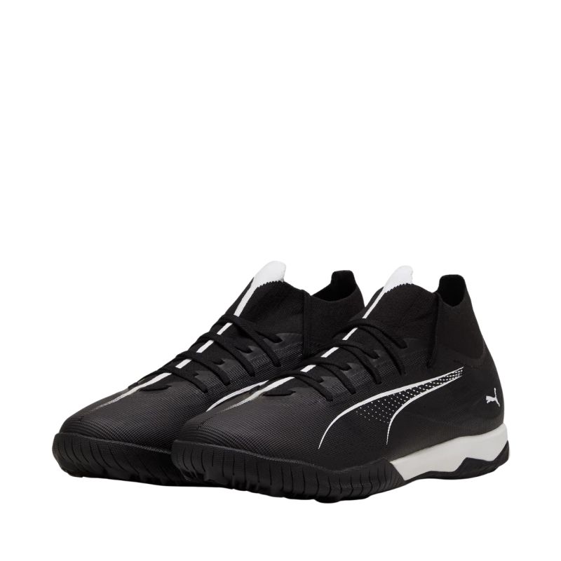Puma Ultra 5 Match+ TT 107890 02 Fußballschuhe. Diese Herren-Fußballschuhe von Puma aus der Eclipse Pack Kollektion bieten eine zuverlässige Kombination aus Kontrolle und Geschwindigkeit. Das leichte Mesh-Obermaterial mit gestricktem, erhöhtem Schaftrand sorgt für optimale Ballkontrolle. Die GripControl-Beschichtung gewährleistet exzellente Ballkontrolle. Die leichte, stützende Konstruktion stabilisiert den Fuß. Die EVA-Zwischensohle bietet zusätzlichen Halt. Die Gummiaußensohle mit speziellem Stollenprofil ermöglicht unvergleichliche Geschwindigkeit auf Kunstrasen.