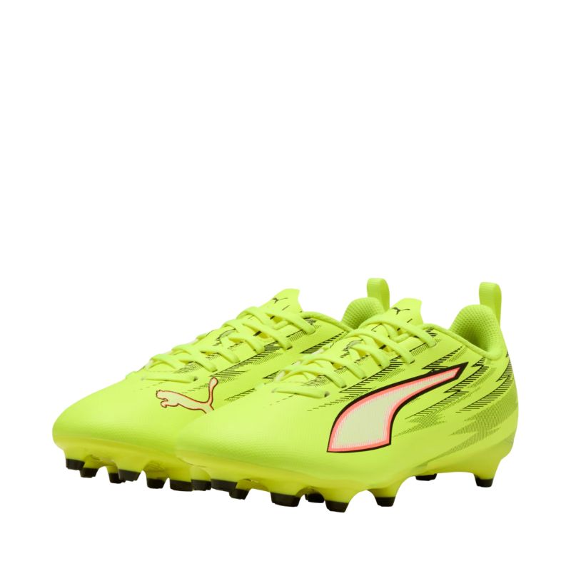 Puma Ultra 6 Play FG/AG 108705 01 Kinder-Fußballschuhe. Diese Puma Ultra Kinder-Fußballschuhe bieten dir Energie und Geschwindigkeit auf dem Spielfeld. Die Freizeitschuhe gehören zur exklusiven Unleashed Pack Kollektion. Sie verfügen über ein leichtes Synthetik-Obermaterial mit geprägten Details und klassischer Schnürung. Die Speedsystem-Außensohle kombiniert Hochleistungsfasern mit einem innovativen Stollensystem für maximale Energierückgabe und verbesserte Beschleunigung. FastTrax-Stollen und abgerundete Seitenstollen sorgen für hervorragende Traktion auf Natur- und Kunstrasen.