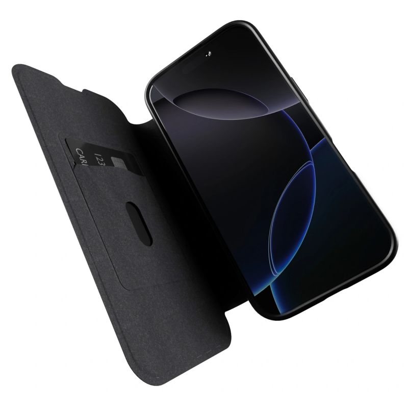 Puro Book Mag MagSafe Lederhülle mit Flip und Kartensteckplatz für iPhone 16 Pro Max – Schwarz