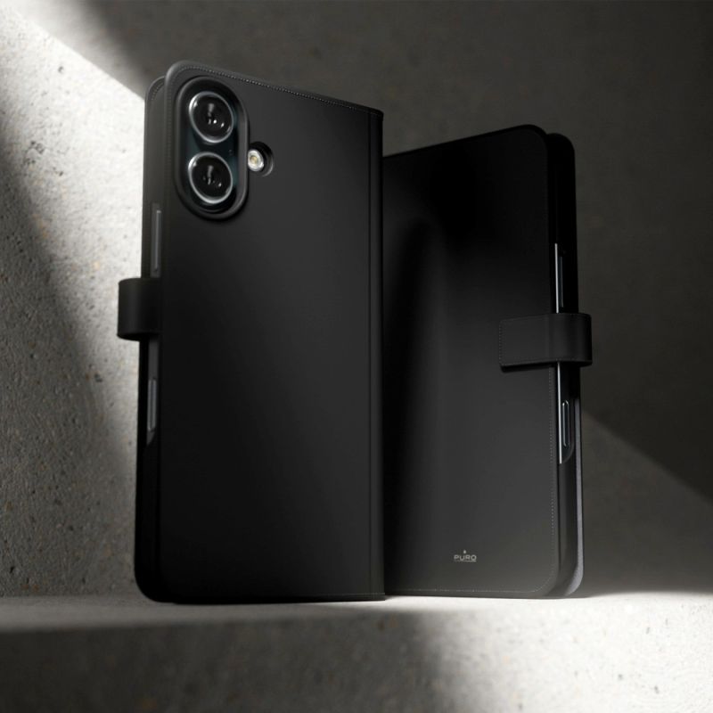 Puro Wallet Abnehmbare MagSafe 2in1 Öko-Lederhülle mit Klappe und Geldbörse für iPhone 16 – Schwarz