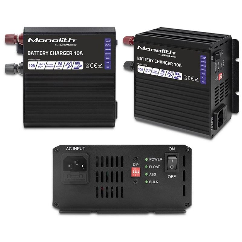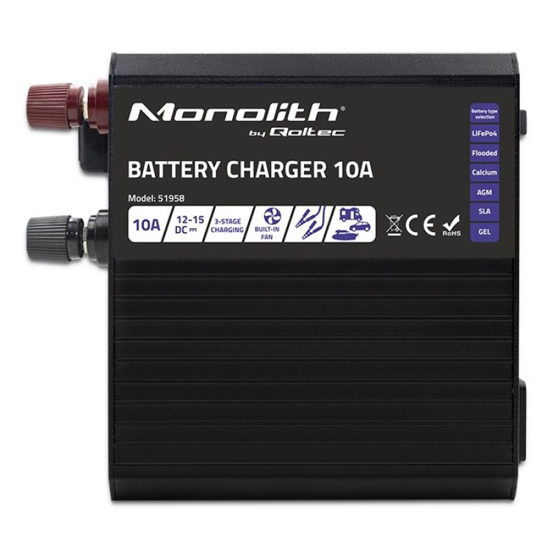 QOLTEC Ladegerät für Monolith LiFePO4-, AGM-, Gel- und SLA-Batterien | 10 A | 12 V