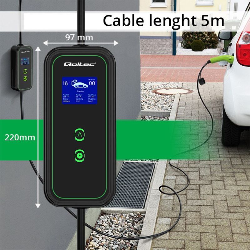 13. Qoltec Mobiles Elektrofahrzeugladegerät 2-in-1 Typ 2, 3,5 kW, 230 V