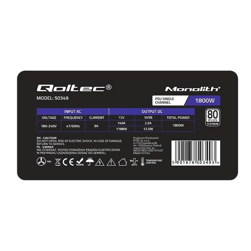 QOLTEC PCI-E 1800W Netzteil | 80 PLUS Platin | Gaming Miner