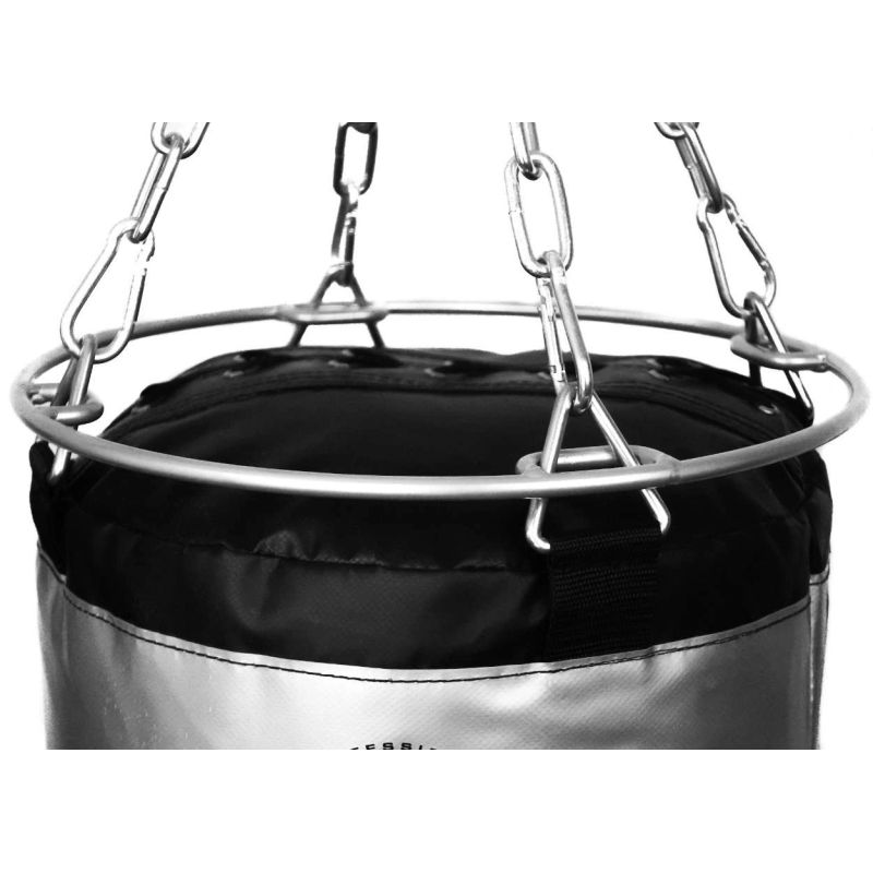Beim Training mit schweren Boxsäcken kommt es häufig zu Verdrehungen der Gurte. Diese Verdrehungen führen zu einer ungleichmäßigen Gewichtsverteilung auf die Gurte, was zu vorzeitigem Verschleiß oder Rissen der Nähte führen kann. Durch die Verwendung eines Rings werden die Gurte natürlich gehalten und ein Verdrehen während des Trainings verhindert.