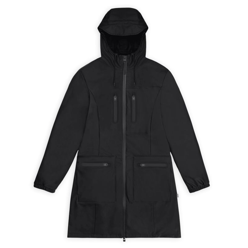 Rains Damen Cargo Curve Jacke W3 12050 01 Schwarzer Regenmantel