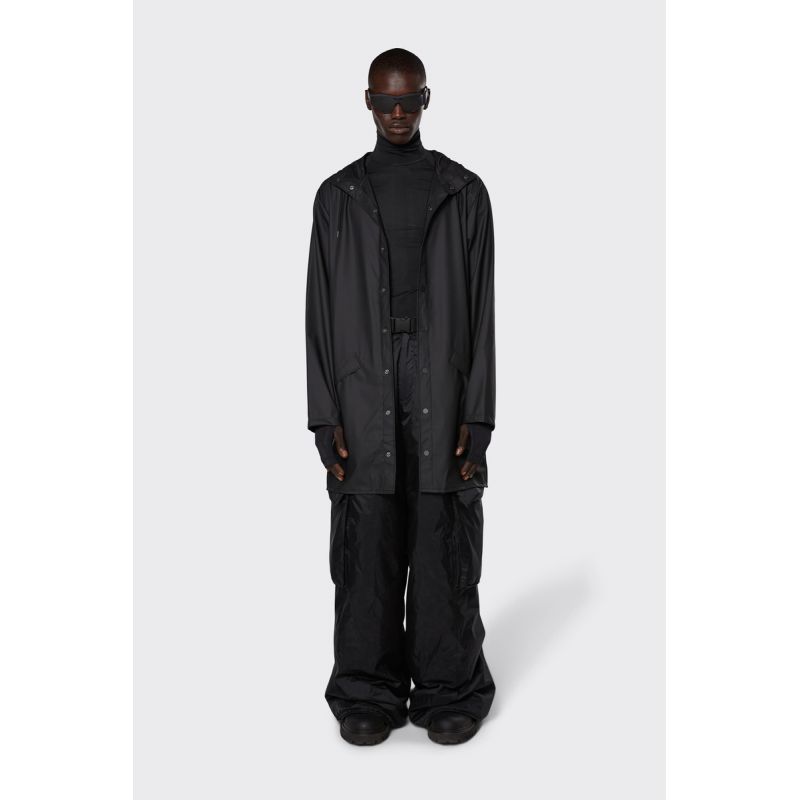 - Die Long Jacket ist eine längere Version des klassischen Regenjacken-Designs. Diese zeitlos moderne Unisex-Regenjacke bietet hohe Funktionalität in minimalistischer Silhouette. Zu den Features gehören doppelt verschweißte diagonale Pattentaschen, verstellbare Bündchen und ein Fischschwanzsaum.