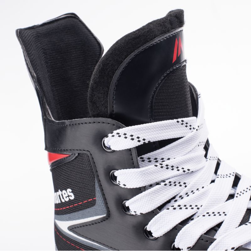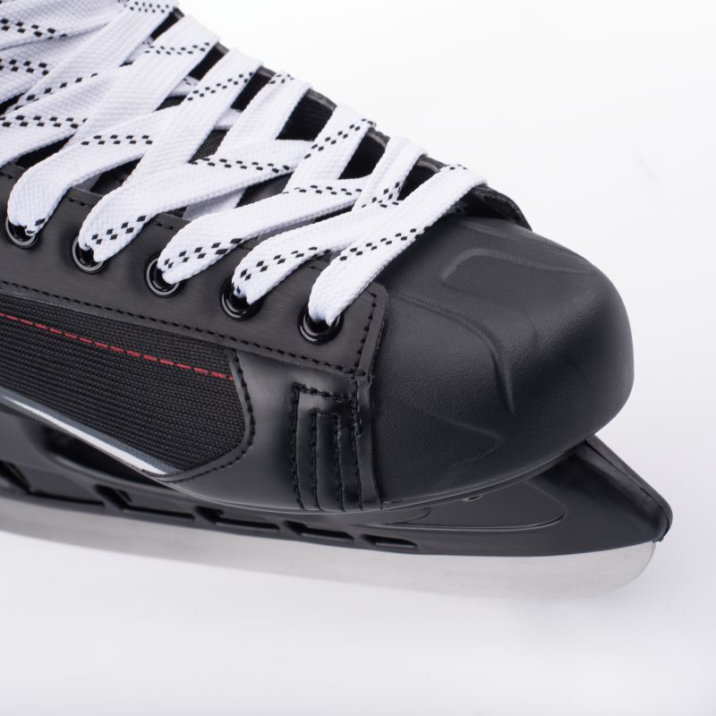 Eishockeyschuhe Größe: 34-47 Materialzusammensetzung: Schuh: Mesh + PVC + PU Kunstleder Futter: Velours Rahmen: PE Kufe: Edelstahlmaterial Kufenschutz: PP Spezifikationen: - Herausnehmbares Innenfutter - Wasserdicht - Synthetisches Material - Edelstahl