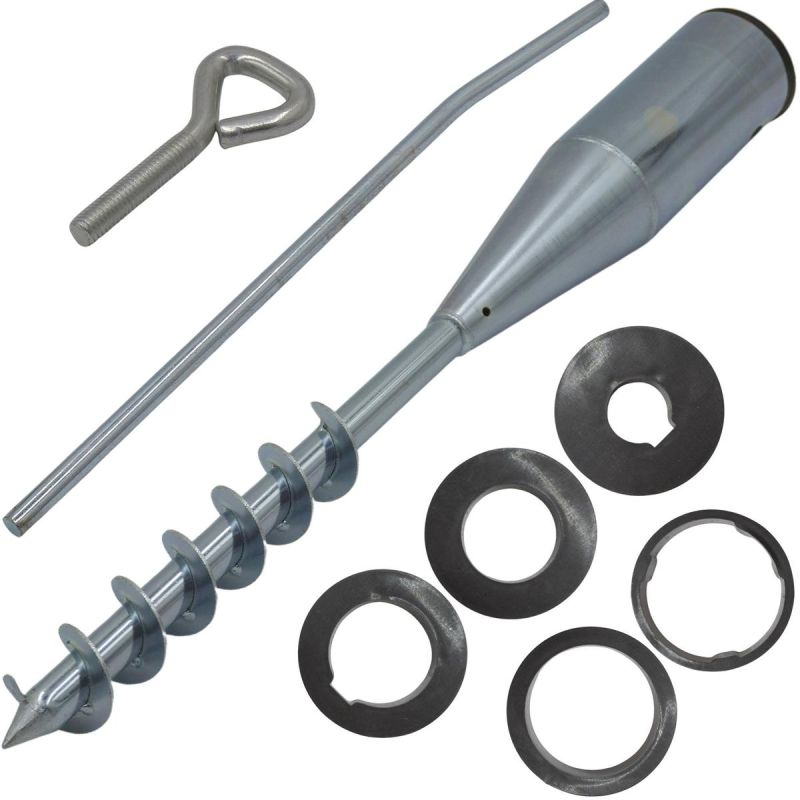 Dank der spiralförmigen Spitze lässt sich der Sockel direkt in Rasen, Erde oder Sand schrauben. Es geht schnell und einfach, und es werden keine weiteren Werkzeuge benötigt.