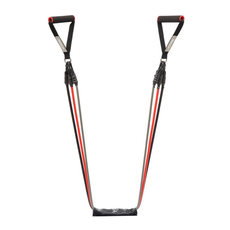 - Das Reebok Power Tube Fitnessband-Set ist für allgemeine Aufbau-, Straffungs- und Formungsübungen konzipiert. Es eignet sich ideal für Ober- und Unterkörpertraining. Es enthält drei bunte, abnehmbare Bänder (grau, schwarz und rot), mit denen Sie den Widerstand (maximal 12,5 kg) an Ihr aktuelles Training anpassen können.