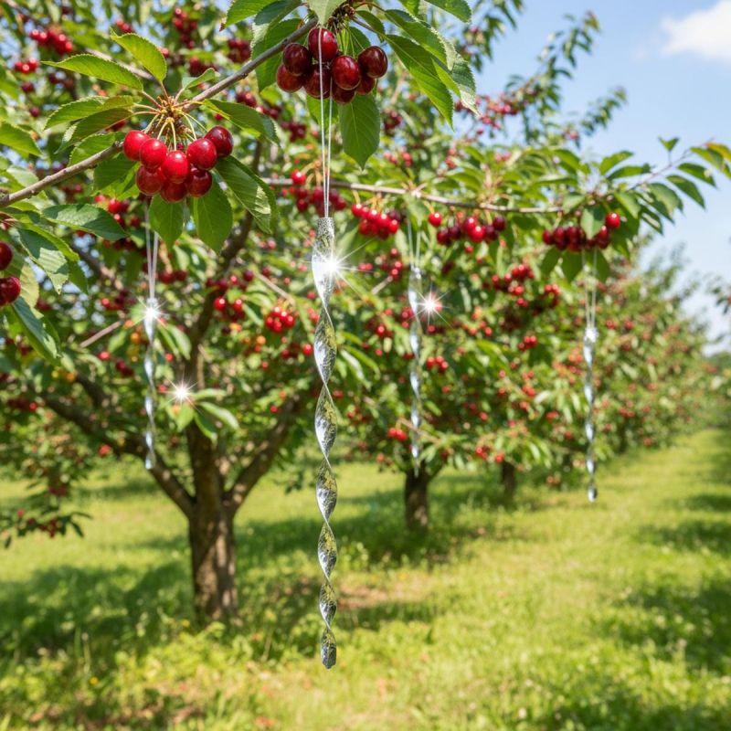 - Es reflektiert Licht und schreckt dadurch Vögel ab.