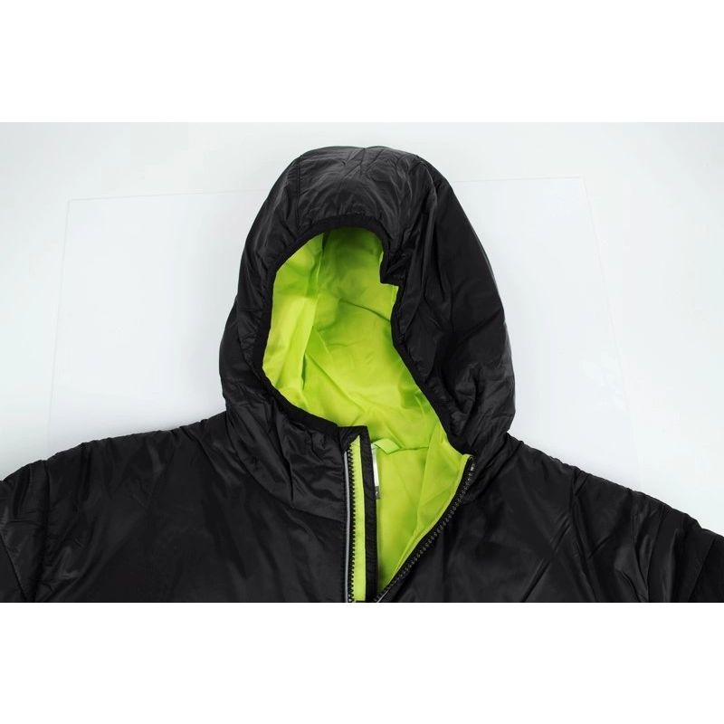 - Die Jacke hat in dieser Saison eine modische Farbkombination – Schwarz und Limette.