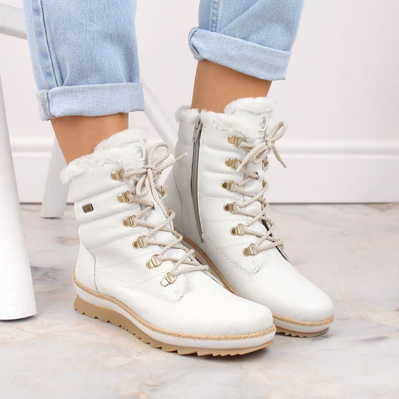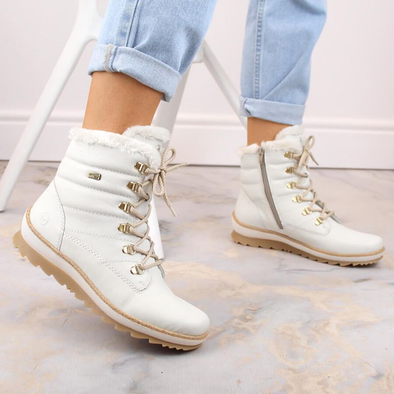 Remonte W RKR629 Wollgefütterte wasserdichte Lederstiefeletten, weiß