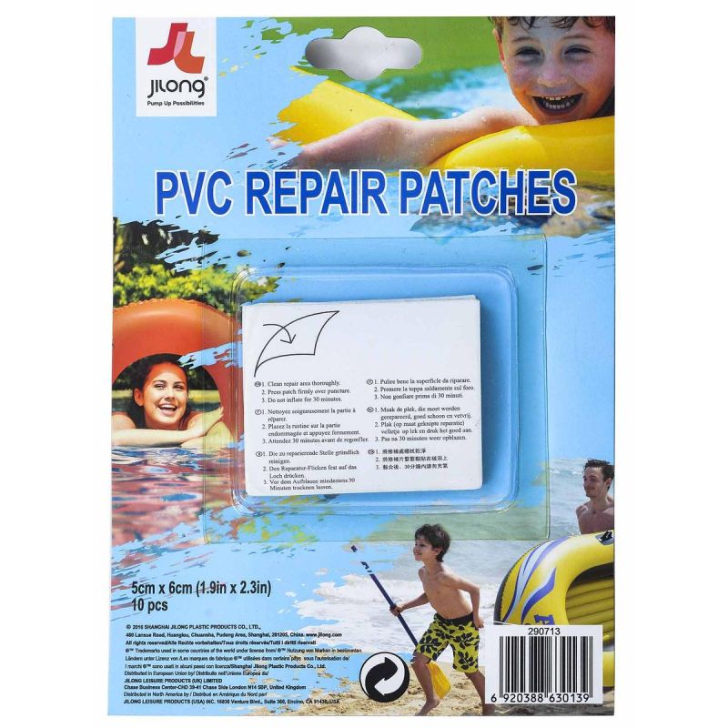 Das Set enthält 10 wasserdichte und selbstklebende Flicken, mit denen Sie Löcher in beliebigen PVC-Gegenständen abdichten können, z. B. in einer aufblasbaren Matratze, Ihrem Lieblingsschwimmring, einem Ball oder einem aufblasbaren Pool.