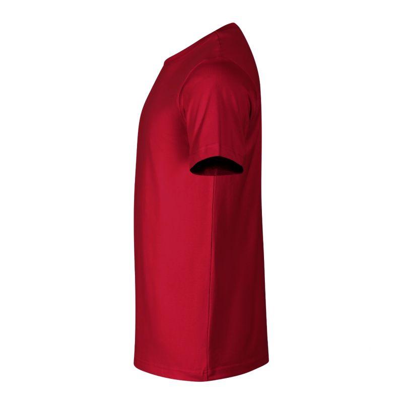 Single Jersey, 100 % einlaufvorbehandelte Baumwolle, temperaturbeständig, waschbar bis 95 °C (weiß) und 60 °C (farbig), Schnitt mit Seitennähten, Halsausschnitt aus 1:1-Rippstrick, verstärkte Schulternähte. Produkt in zwei Ausführungen erhältlich: mit oder ohne Markenlabel in der Seitennaht (siehe Farbkarte). Die Label-Option ist nur erhältlich, solange der Vorrat reicht.