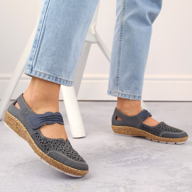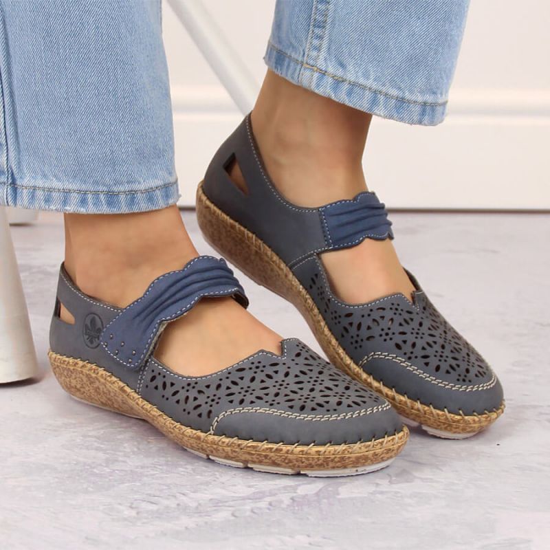 Rieker W RKR648 blaue durchbrochene Lederschuhe