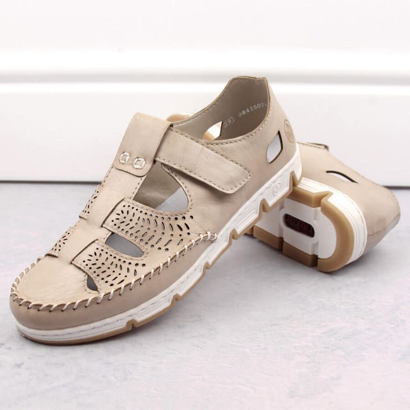 Rieker W RKR651 beige Leder Klettverschluss durchbrochene Schuhe