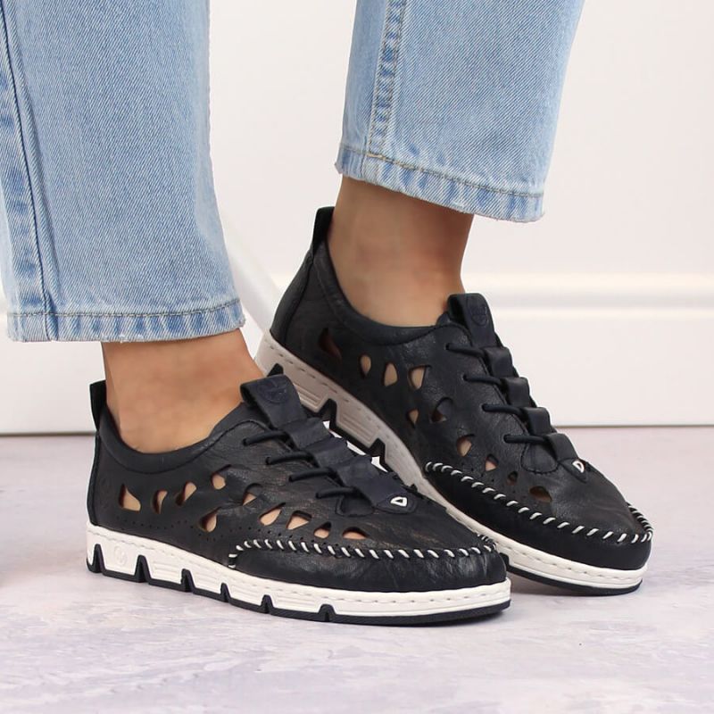 Rieker W RKR652 marineblaue durchbrochene Lederschuhe
