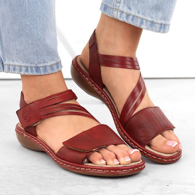 19. Rieker W RKR685 bequeme Ledersandalen rot