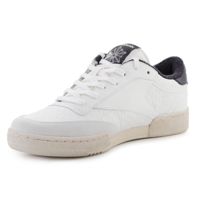 Der Reebok Club C RMIA011C99LEA0030110 in Weiß/Schwarz ist ein Herren-/Unisex-Modell im klassischen Sneaker-Stil und perfekt für den Alltag. Das Obermaterial aus Kalbsleder mit Wildlederakzenten sorgt für Eleganz und Strapazierfähigkeit. Das textilgefütterte Innenfutter erhöht den Tragekomfort. Das Low-Top-Design ermöglicht Bewegungsfreiheit und verleiht dem Look einen Hauch von Leichtigkeit. Die Gummilaufsohle bietet guten Halt, während die traditionelle Schnürung für einen sicheren Sitz sorgt. Dank der weiß-schwarzen Farbgebung passen diese Schuhe praktisch zu allem – zu Jeans, Jogginghosen oder leichten Hosen.