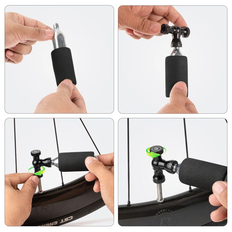 Eine CO₂-Pumpe ermöglicht das schnelle Aufpumpen von Reifen im Notfall. Sie ist eine praktische Lösung für Radfahrer, die nach einer Reifenpanne schnell wieder unterwegs sein wollen.
